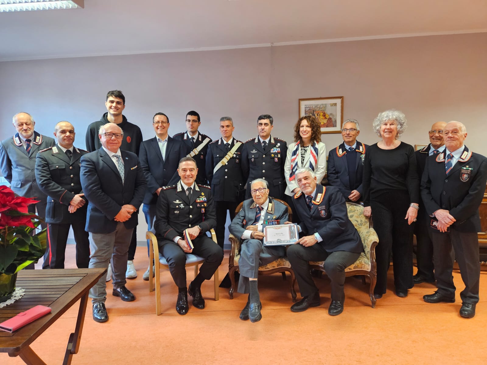 Il maresciallo Renato Quaglia, 107 anni, ha ricevuto oggi - venerdì 16 gennaio - l'attestato di Lode dalla Benemerita firmato dal Generale di Corpo d'Armata Libero Lo Sardo: "per il suo qualificato impegno e la lunga e preziosa continuità di servizio nell'Arma e nell'ANC". Una mattinata intensa per il decano dei Carabinieri italiani nell'Opera Pia Garelli di Garessio, dove è ospite, iniziata con la presenza del cap. Francesca Borrelli, comandante della Compagnia di Mondovì, e del col. Marco Piras, comandante provinciale nella RSA e con l'intervista per la rivista nazionale della...